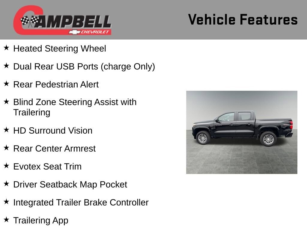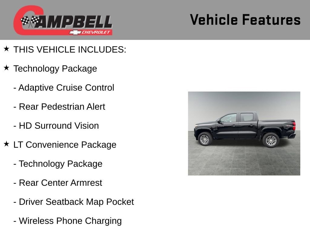 Packed with an impressive array of features, this Colorado LT is designed to exceed your expectations. Key highlights include the Advanced Trailering Package, Heavy-Duty Trailering Package, LT Convenience Package, and the cutting-edge Technology Package. Standout features that will captivate you include: