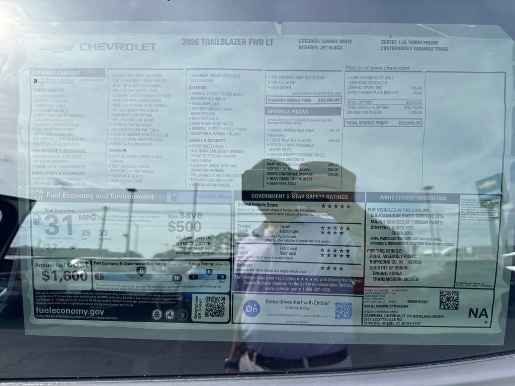 2026 Chevrolet TrailBlazer LT Summit White AWD 9-Speed Automatic 1.3L I3 Turbocharged DOHC 12V LEV3-SULEV30 155hp