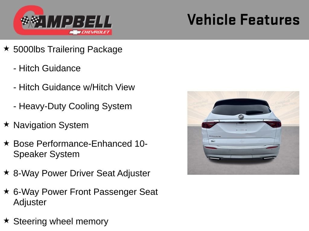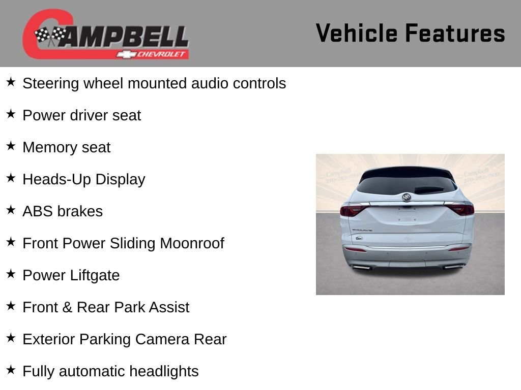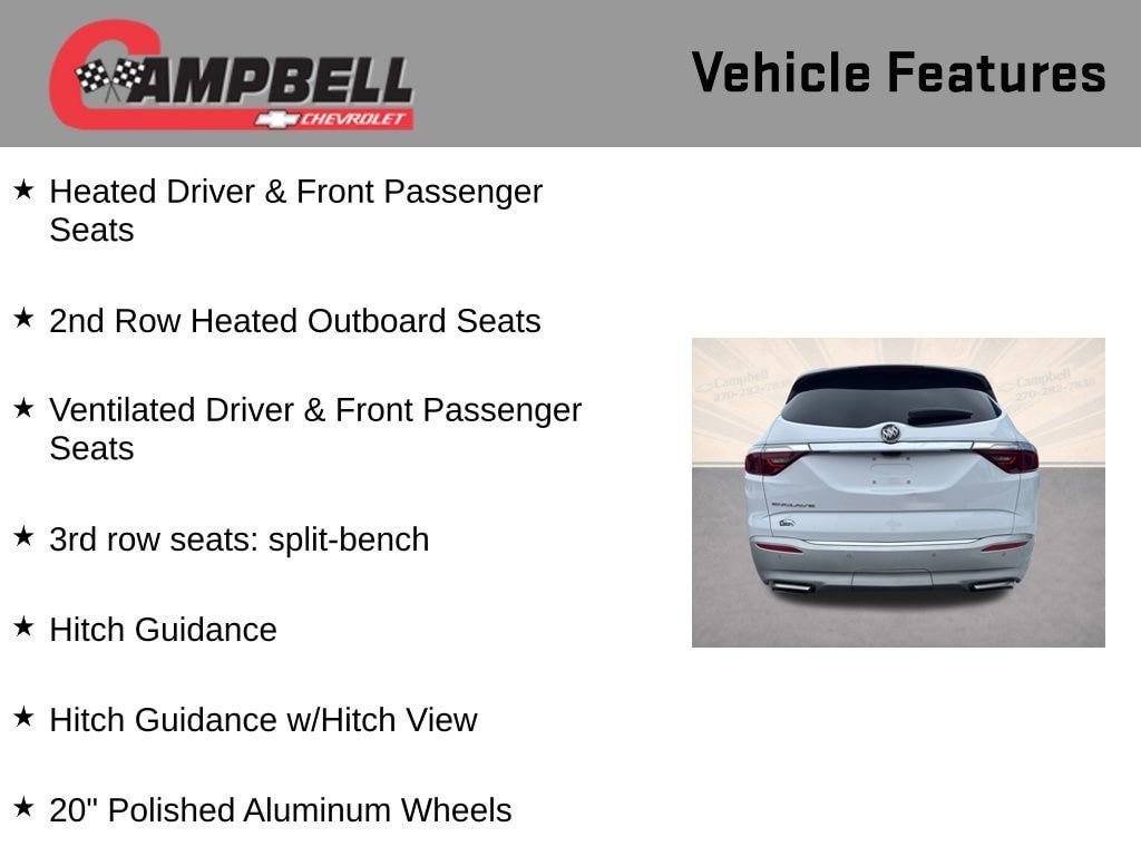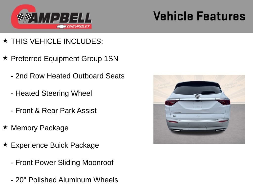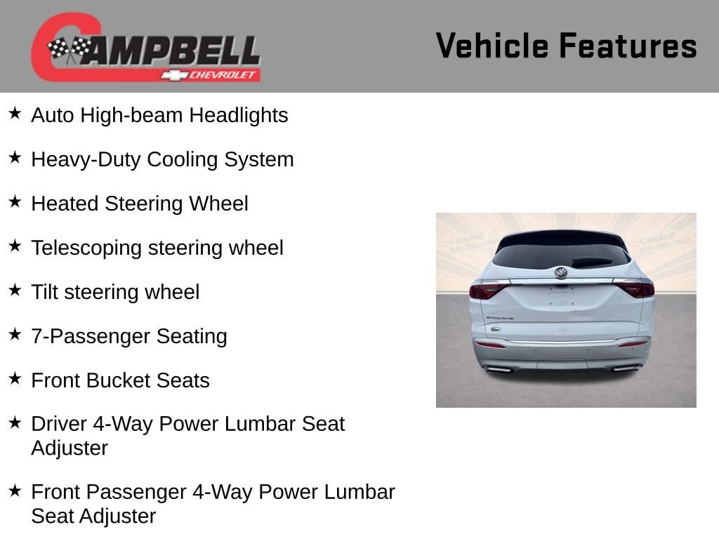 Safety is paramount in the Enclave, with a suite of advanced driver-assistance technologies, including Rear Park Assist, Automatic Emergency Braking, and Lane Keep Assist. You can drive with confidence, knowing your loved ones are protected.