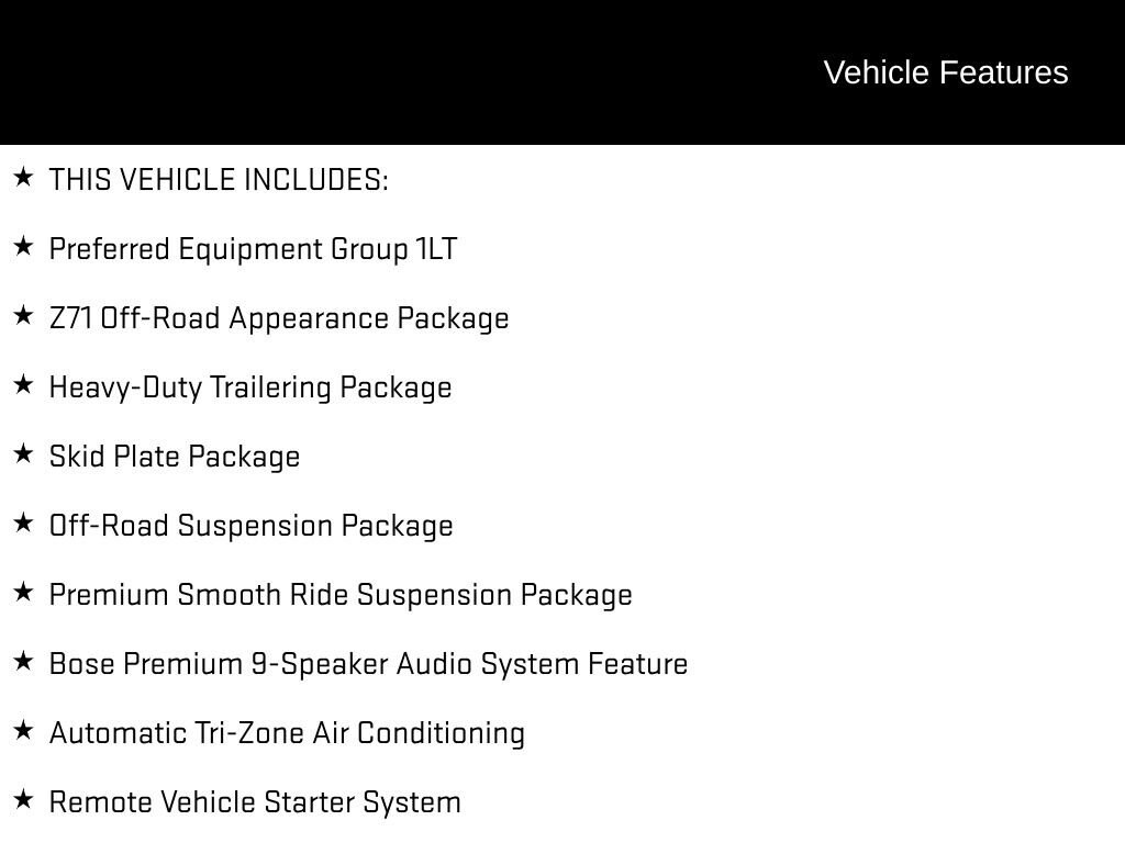 Designed to conquer the toughest terrain, this Tahoe LT is equipped with a comprehensive Off-Road Suspension Package, featuring specially-tuned springs, gas-charged monotube shocks, and a heavy-duty locking rear differential. The Skid Plate Package and Z71 Off-Road Appearance Package further enhance the vehicle's rugged capabilities, ensuring you can tackle any challenge with confidence.