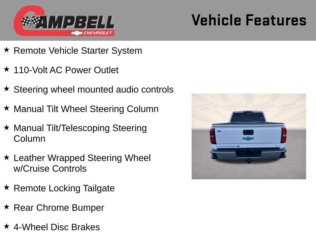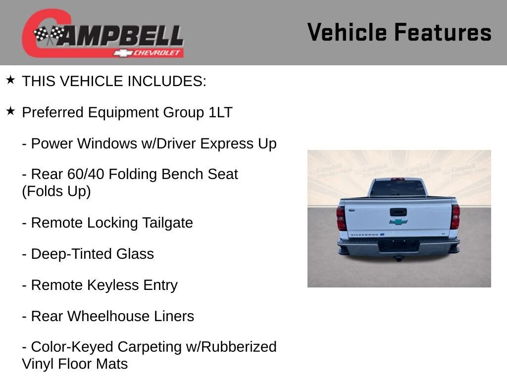 THIS VEHICLE INCLUDES:, 8-Speed Automatic, Black Cloth, 10-Way Power Driver's Seat Adjuster, 110-Volt AC Power Outlet, 150 Amp Alternator, 4-Wheel Disc Brakes, 4.2 Diagonal Color Display Driver Info Center, 40/20/40 Front Split Bench Seat, 6 Speaker Audio System, ABS brakes, All Star Edition, Alloy wheels, Auxiliary External Transmission Oil Cooler, Bluetooth® For Phone, Body Color Bodyside Moldings, Body-Color Door Handles, Body-Color Mirror Caps, Body-Color Power Adjustable Heated Outside Mirrors, Bodyside moldings, Chevrolet Connected Access, Chevrolet w/4G LTE, Chrome Grille Surround, Color-Keyed Carpeting w/Rubberized Vinyl Floor Mats, Deep-Tinted Glass, Driver & Front Passenger Illuminated Vanity Mirrors, Dual front impact airbags, Dual front side impact airbags, Dual-Zone Automatic Climate Control, Electric Rear-Window Defogger, EZ Lift & Lower Tailgate, Front anti-roll bar, Front Chrome Bumper, Front wheel independent suspension, Fully automatic headlights, HD Radio, Heated door mirrors, Heavy-Duty Rear Locking Differential, High-Intensity Discharge Headlights, Leather Wrapped Steering Wheel w/Cruise Controls, LED Cargo Box Lighting, Low tire pressure warning, Manual Tilt Wheel Steering Column, Manual Tilt/Telescoping Steering Column, Occupant sensing airbag, OnStar & Chevrolet Connected Services Capable, Overhead airbag, Power door mirrors, Power Windows w/Driver Express Up, Preferred Equipment Group 1LT, Rear 60/40 Folding Bench Seat (Folds Up), Rear Chrome Bumper, Rear Wheelhouse Liners, Remote Keyless Entry, Remote Locking Tailgate, Remote Vehicle Starter System, Single Slot CD/MP3 Player, Steering Wheel Audio Controls, Steering wheel mounted audio controls, Theft Deterrent System (Unauthorized Entry), Thin Profile LED Fog Lamps, Tilt steering wheel, Trailering Package, Variably intermittent wipers.