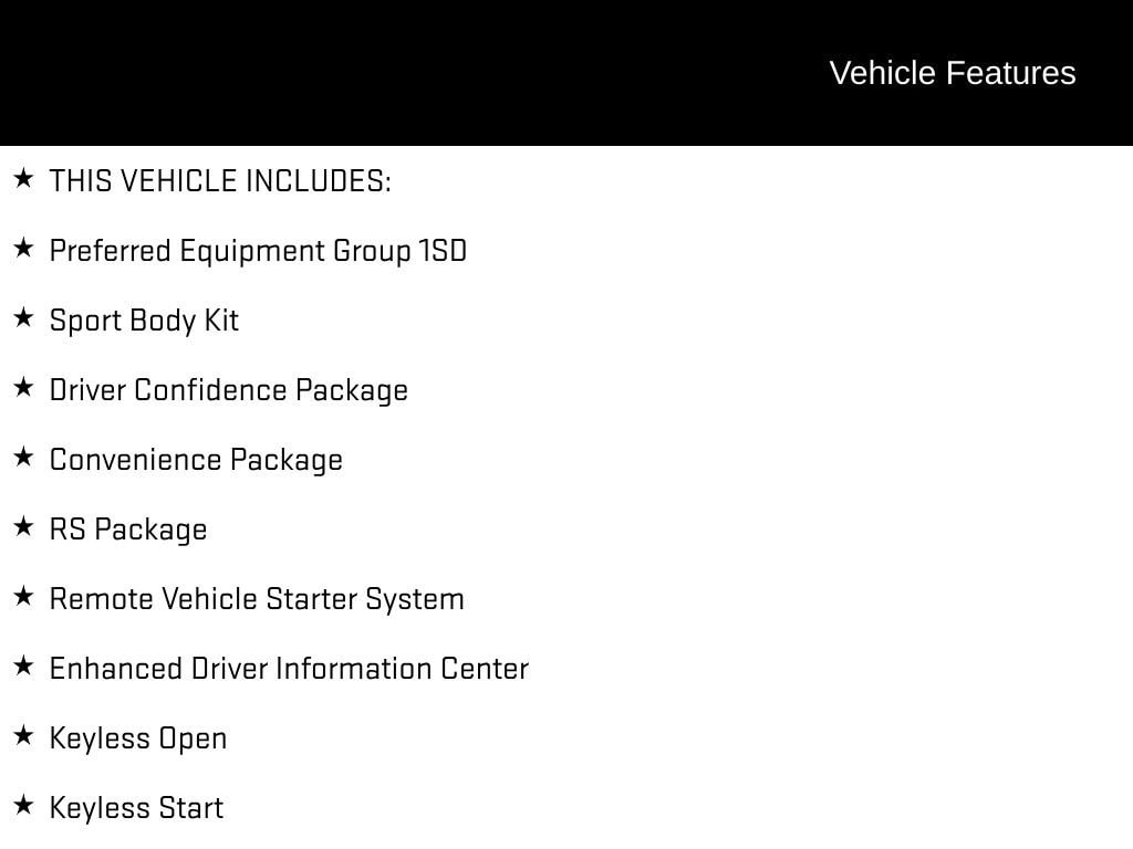 RS Package: Elevate your style with a sporty body kit, fog lights, black Chevrolet emblems, and a unique sport-inspired steering wheel.