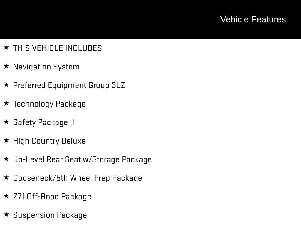 HIGH COUNTRY DELUXE package with Safety Package II, Technology Package, and Gooseneck/5th Wheel Prep Package