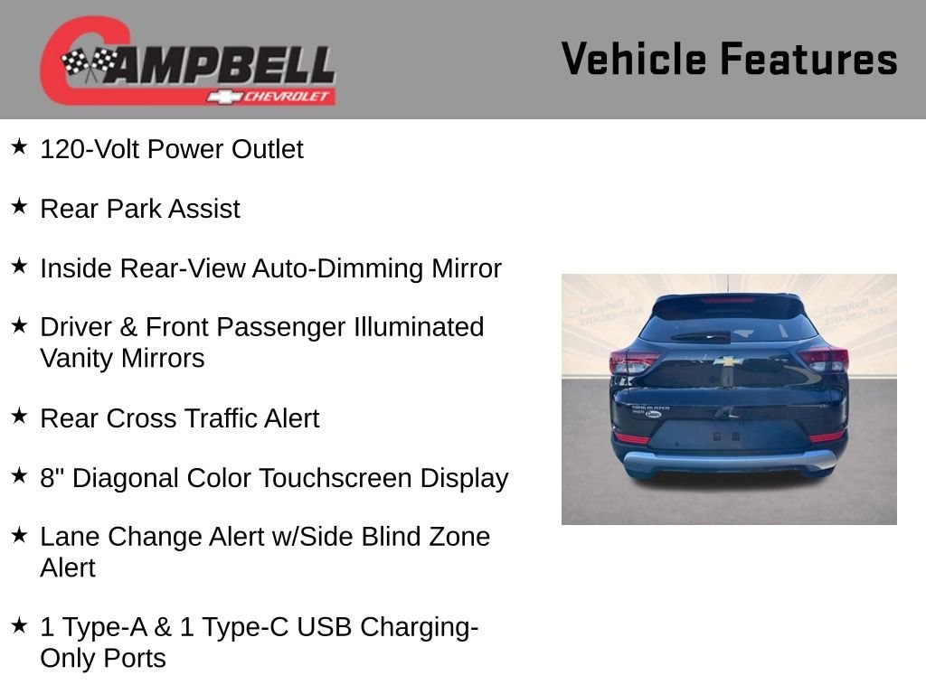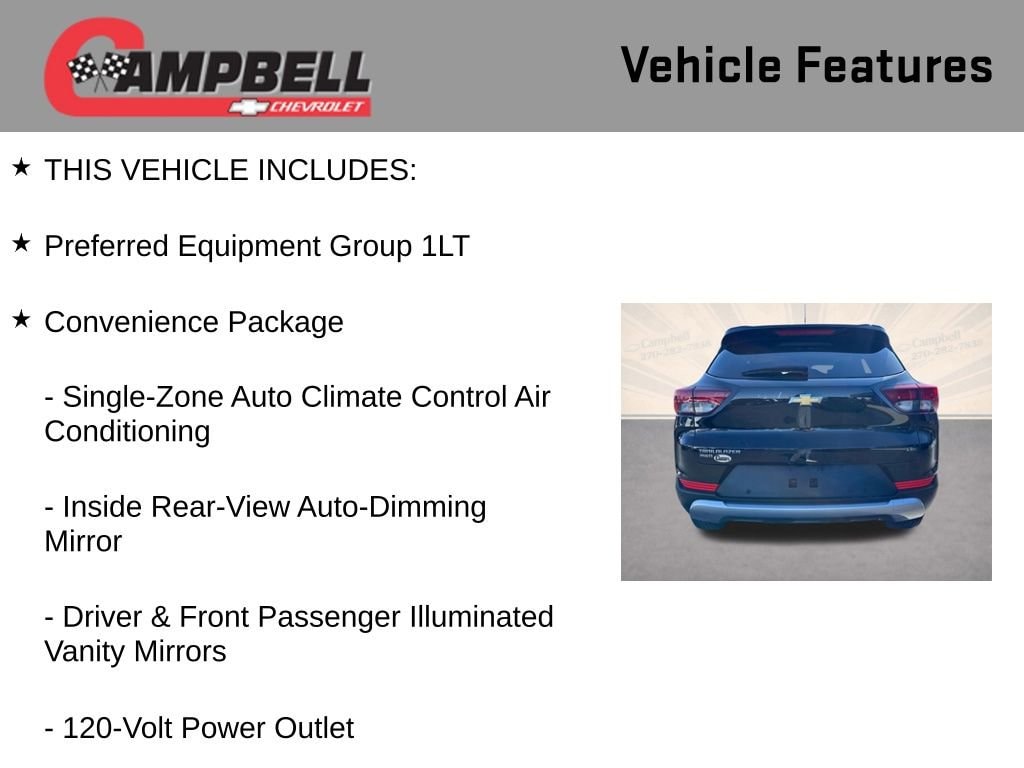 This TrailBlazer LT also boasts a well-appointed interior with cloth seating, heated front seats, power driver's seat, and a split-folding rear seat for maximum flexibility. The 6-speaker audio system, SiriusXM radio, and wireless Apple CarPlay/Android Auto integration keep you connected and entertained.