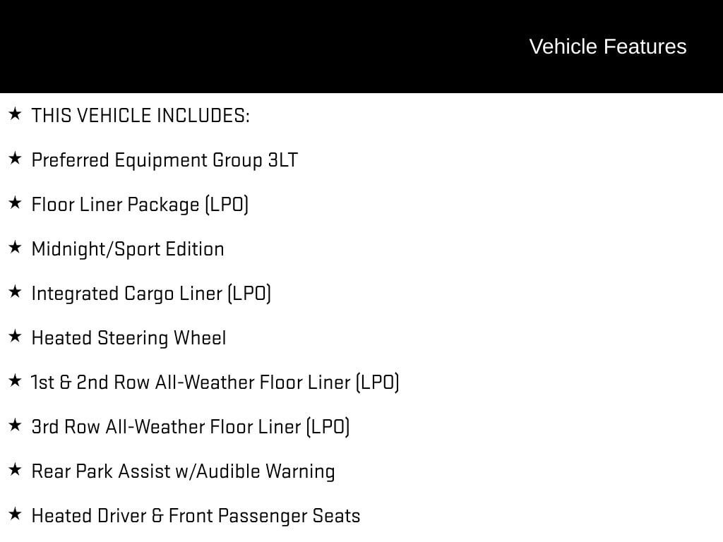 PREFERRED EQUIPMENT GROUP 3LT: Indulge in the convenience of a Heated Steering Wheel, Rear Park Assist with Audible Warning, and Heated Driver & Front Passenger Seats.