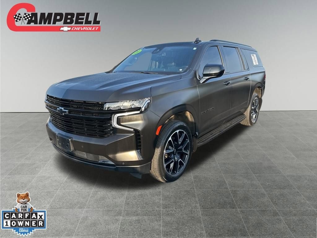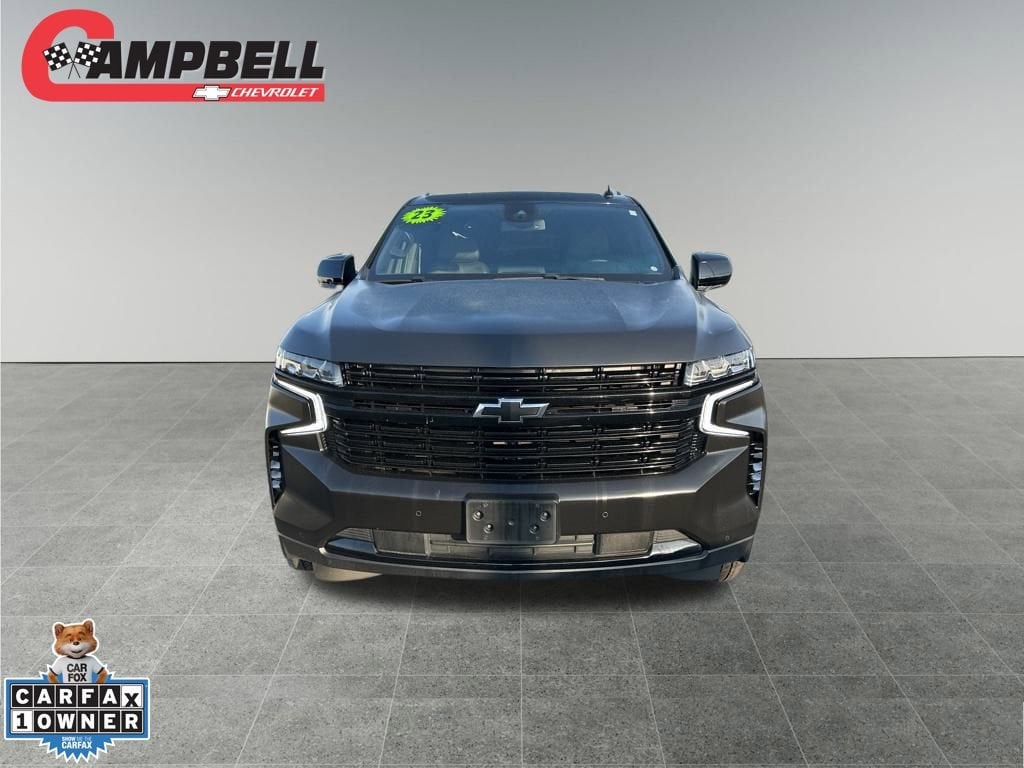 THIS VEHICLE INCLUDES:, MATTE BLACK WRAP, 10-Way Power Driver & Passenger Seat Adjusters, 1st & 2nd Row Color-Keyed Carpeted Floor Mats, 3rd row seats: split-bench, 4-Wheel Disc Brakes, ABS brakes, Alloy wheels, Apple CarPlay/Android Auto, Auto High-beam Headlights, Auto-Dimming Inside Rear-View Mirror, Automatic temperature control, Bose 9-Speaker Stereo Audio System Feature, Brake assist, Bright Front & Rear Door Sill Plates, Color-Keyed Carpeting Floor Covering, Delay-off headlights, Driver & Front Outboard Passenger Airbags, Dual front impact airbags, Dual front side impact airbags, Dual-Pane Power Panoramic Sunroof, Electronic Stability Control, Emergency communication system: OnStar and Chevrolet connected services capable, Enhanced Driver Information Center, Floor Console w/Storage Area, Four wheel independent suspension, Front anti-roll bar, Front Bucket Seats, Front Center Armrest, Fully automatic headlights, Hands-Free Rear Power Programmable Liftgate, Heated door mirrors, Heated Driver & Front Passenger Seats, Infotainment Display, LED Daytime Running Lamps, Low tire pressure warning, Memory seat, Memory Settings For Driver, Navigation System, Occupant sensing airbag, Overhead airbag, Panic alarm, Perforated Leather Seating Surfaces, Power door mirrors, Power driver seat, Power Liftgate, Preferred Equipment Group 1SP, Premium audio system: Chevrolet Infotainment 3 Premium, Premium Smooth Ride Suspension, Rear air conditioning, Rear anti-roll bar, Remote keyless entry, Remote Start, Roof rack: rails only, Security system, SiriusXM Radio w/360L, Speed control, Speed-sensing steering, Spoiler, Steering wheel mounted audio controls, Traction control, Universal Home Remote, Wheel Locks (Set of 4) (LPO), Wheels: 22 x 9 Bright Machined, Wireless Charging, Wrapped Steering Wheel.