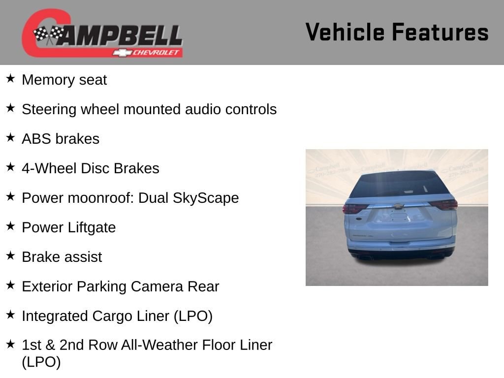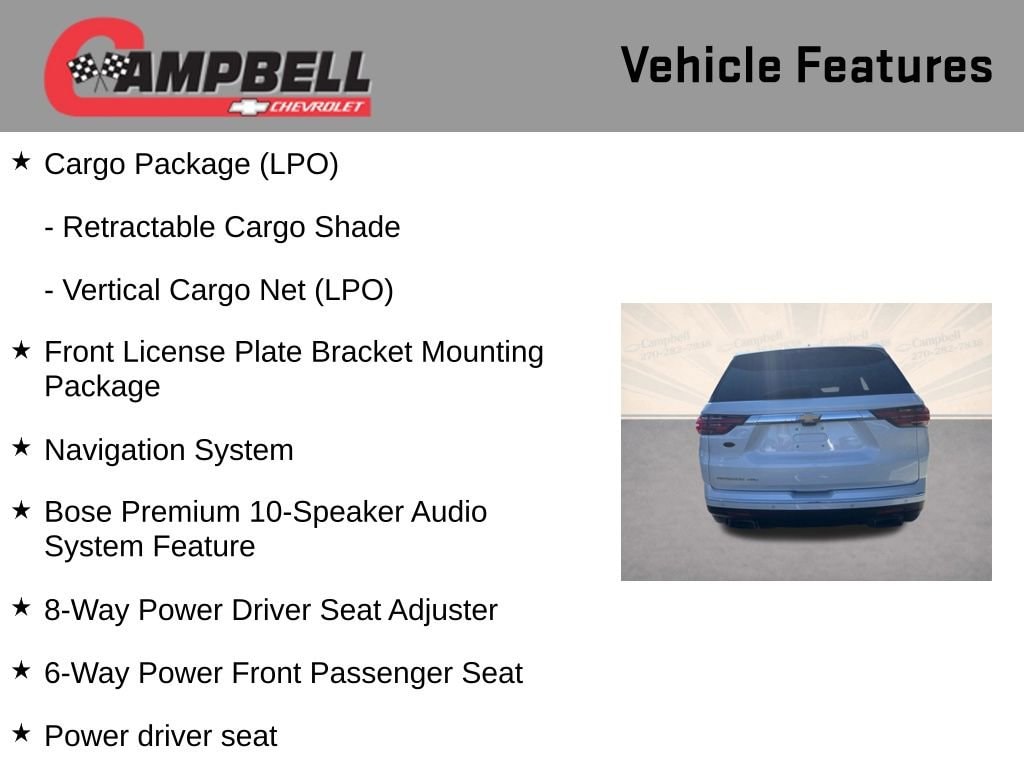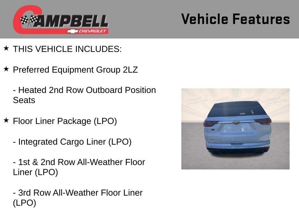 The 2023 Chevrolet Traverse High Country is more than just a vehicle it's a statement of refined style and uncompromising capability. With its stunning appearance, luxurious interior, and advanced features, this SUV is poised to elevate your driving experience to new heights. Experience the difference for yourself by scheduling a test drive at our showroom today.