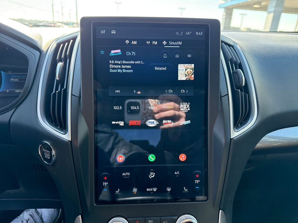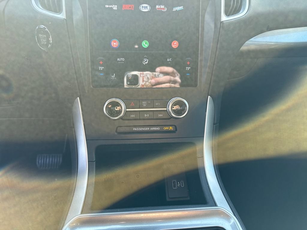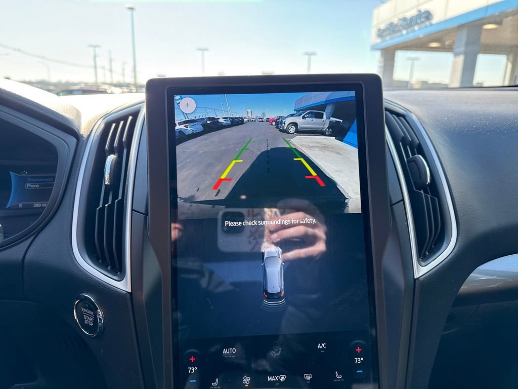 The interior of this Edge is designed with your comfort and convenience in mind. Sink into the heated, power-adjustable front seats, and take advantage of the SYNC 4A with Enhanced Voice Recognition system, keeping you connected and entertained on every journey. The dual-zone automatic climate control and rear window defroster ensure a comfortable cabin, while the rear parking sensors and electronic stability control provide added peace of mind.