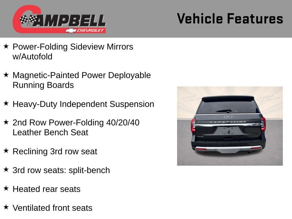 Designed to accommodate your every need, the Expedition Limited offers ample seating for up to 8 passengers, along with the Advanced Cargo Manager system, ensuring you can effortlessly transport your gear and loved ones with ease. The power-folding 2nd-row seats and power liftgate further enhance the vehicle's versatility, making loading and unloading a breeze.