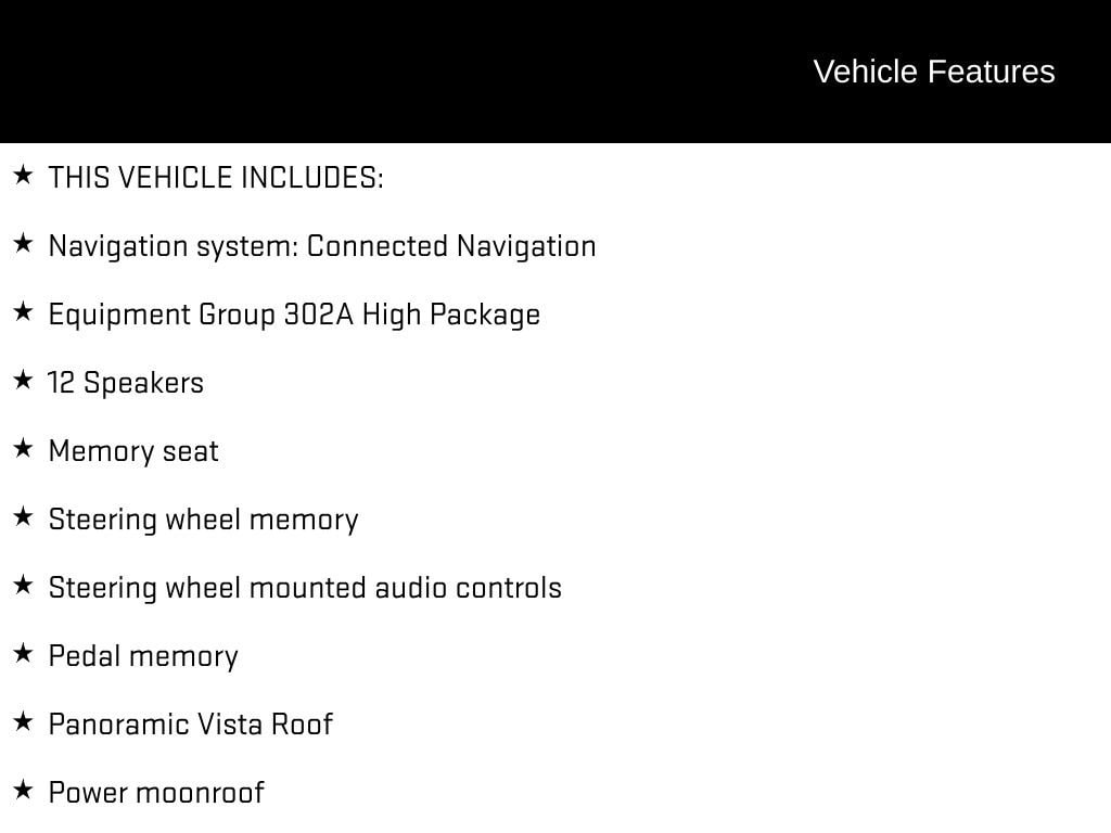 - Panoramic Vista Roof with power open/close and power shade