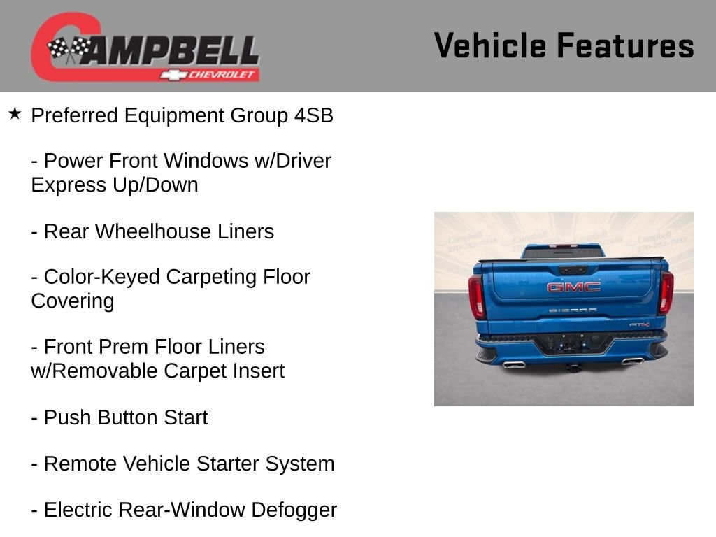 THIS VEHICLE INCLUDES:, 10-Speed Automatic, 4WD, Jet Black With Kalahari Accents Leather, 120-Volt Bed Mounted Power Outlet, 120-Volt Instrument Panel Power Outlet, 2 Charge/Data USB Ports Inside Center Console, 2 Type-C Charge-Only Rear USB Ports, 2 USB Ports, 220 Amp Alternator, Adaptive Cruise Control, AT4 Preferred Package, Auto-Locking Rear Differential, Black Chrome Header & Grille Insert Bars, Color-Keyed Carpeting Floor Covering, Compass, Deep-Tinted Glass, Electric Rear-Window Defogger, Electrical Steering Column Lock, Floor-Mounted Center Console, Front Prem Floor Liners w/Removable Carpet Insert, Front Rainsensing Wipers, GMC Connected Access Capable, HD Rear Vision Camera, Heated 2nd Row Outboard Seats, Heated Driver & Front Outboard Passenger Seating, Heated Steering Wheel, Heavy-Duty Air Filter, Hill Descent Control, Hitch Guidance, Hitch Guidance w/Hitch View, In-Vehicle Trailering App, Integrated Trailer Brake Controller, Keyless Open & Start, LED Cargo Area Lighting, Navigation System, OnStar & GMC Connected Services Capable, Perimeter Lighting, Power Door Locks, Power Front Passenger Windows w/Express Up/Down, Power Front Windows w/Driver Express Up/Down, Power Rake & Telescoping Steering Column, Power Rear Windows w/Express Down, Power Sliding Rear Window w/Rear Defogger, Preferred Equipment Group 4SB, Premium Bose 7-Speaker Sound System, Push Button Start, Rear Prem Floor Liners w/Removable Carpet Insert, Rear Wheelhouse Liners, Red Recovery Hooks, Remote Vehicle Starter System, SiriusXM w/360L, Spray-On Pickup Bed Liner w/AT4 Logo, Steering Wheel Audio Controls, Theft Deterrent System (Unauthorized Entry), Trailering Package, Universal Home Remote, Ventilated Driver & Front Passenger Seats, Wi-Fi Hotspot Capable, Wireless Charging, Wireless Phone Projection.