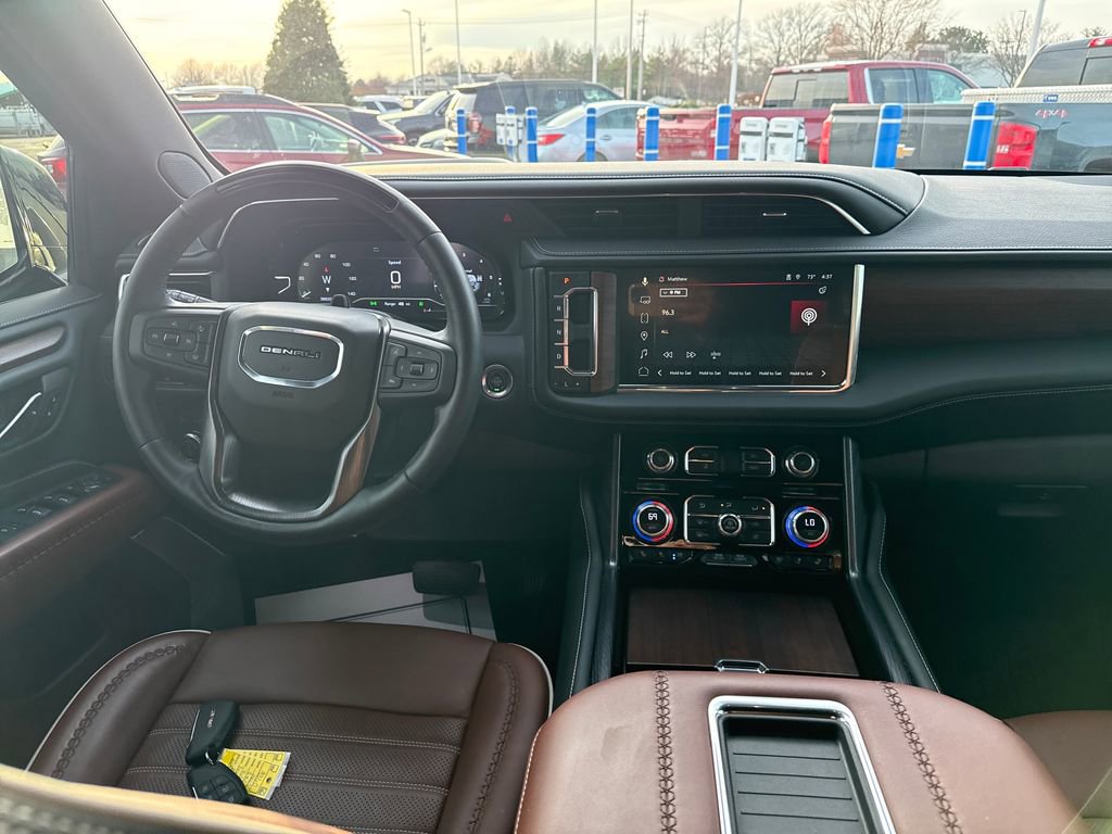 Step inside the Yukon Denali Ultimate, and you'll be surrounded by an unparalleled level of luxury and craftsmanship. The full-grain leather seats, heated and ventilated for your comfort, provide a truly indulgent driving experience. The Bose Performance Series Sound System with 18 speakers immerses you in crystal-clear audio, while the 15 Diagonal Multi-Color Head-Up Display puts essential information right in your line of sight.
