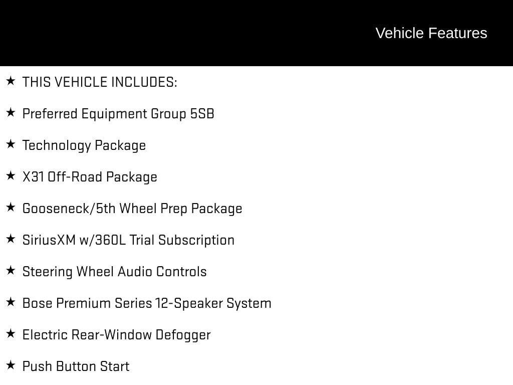 Elevate your towing and hauling capabilities with the Gooseneck/5th Wheel Prep Package, complete with a hitch platform and 7-pin trailer harness. Conquer any terrain with the X31 Off-Road Package, featuring Hill Descent Control and an advanced 2-speed transfer case.