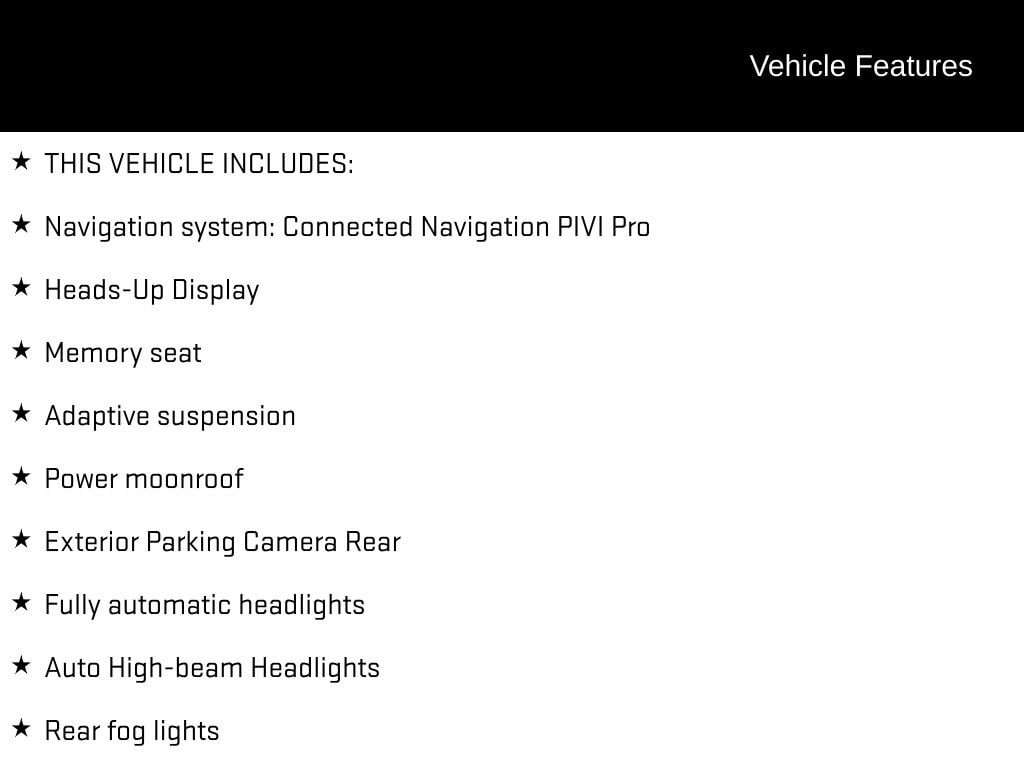 - Integrated navigation : Connected Navigation PIVI Pro integrated navigation system with voice activation