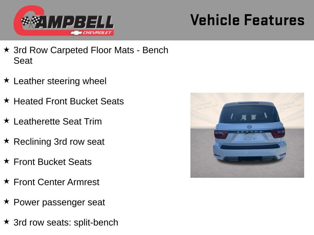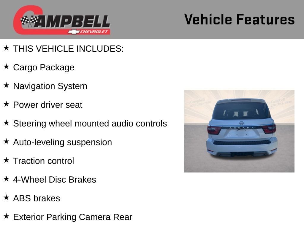 Discover the power and versatility of the 2024 Nissan Armada SV. This exceptional full-size SUV offers a commanding presence on the road, blending premium features with exceptional capability. Boasting a robust 5.6L V8 engine delivering an impressive 400 horsepower, the Armada SV is ready to tackle any adventure with ease.