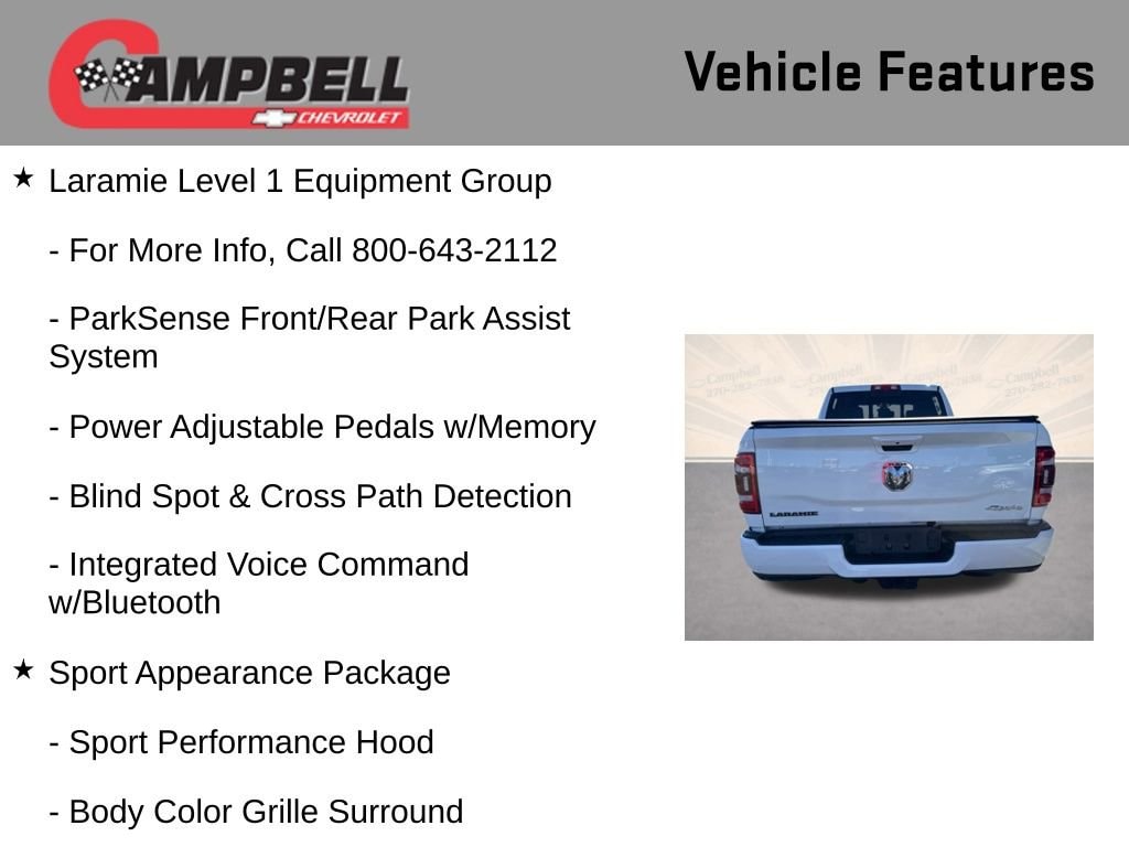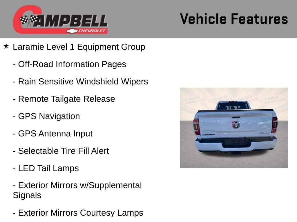 Whether you're tackling tough jobs or embarking on adventurous journeys, this 2024 Ram 2500 Laramie is the perfect companion. With its exceptional capabilities, refined interior, and cutting-edge technology, this truck is designed to elevate your driving experience to new heights. We invite you to schedule a test drive and witness the remarkable performance and versatility of this remarkable vehicle firsthand.